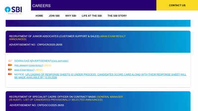 SBI Clerk mains result 2026: The State Bank of India has announced the SBI Clerk Mains Result 2026 for recruitment to the post of Clerk, also known as Junior Associate. The result was released on February 27, 2026, for candidates who appeared in the mains written examination conducted earlier in the recruitment cycle.Candidates who participated in the examination can check their qualifying status through the official websites bank.sbi and sbi.co.in. The recruitment drive was conducted under advertisement number CRPD/CR/2025-26/06 and aims to fill thousands of clerical vacancies across branches of the bank.Recruitment drive and examination timelineThe recruitment process began after the notification was issued on August 5, 2025. Online registration for applicants opened on August 6, 2025, and continued until August 26, 2025.Following the application phase, the preliminary examination stage was conducted on September 20, September 21 and September 27, 2025. The admit cards for the prelims examination were issued earlier on September 14, 2025. The result for the preliminary stage was declared on November 4, 2025, allowing shortlisted candidates to appear in the next stage of selection.The mains written examination was later conducted on November 21, 2025. After evaluation of answer scripts and completion of assessment procedures, the bank released the mains result on February 27, 2026.Score card release and result accessAccording to the schedule published by the bank, the score card for the SBI Clerk Mains examination is scheduled to be released on March 10, 2026. Candidates will be able to download their marks and detailed performance report using login credentials on the official recruitment portal.The result document includes the list of candidates shortlisted for the next stages of the recruitment process. Aspirants can also access the merit list PDF made available through the official website.Vacancy details and eligibilityThe recruitment aims to fill a total of 5,583 posts of Clerk or Junior Associate. Out of these, 5,180 positions fall under regular vacancies while 403 posts are reserved as backlog vacancies.Applicants were required to hold a graduate degree from a recognised university to be eligible for the post. The prescribed age limit for the recruitment was between 20 and 28 years, with the cut-off date for age calculation set as April 1, 2025. Age relaxation provisions apply according to the rules applicable to different categories.Selected candidates will receive a basic pay of Rs 26,730 per month.Selection process for SBI Clerk recruitmentThe selection procedure consists of multiple stages designed to evaluate candidates for clerical roles. The recruitment process includes a preliminary written examination followed by the mains written examination.Candidates who qualify in the mains stage are required to undergo a local language proficiency test. After this stage, shortlisted applicants will proceed to document verification and a medical examination before final appointment decisions are made.