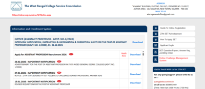 The West Bengal College Service Commission (WBCSC) has released the Assistant Professor Recruitment 2026 notification. Online applications have started from February 26, 2026. Eligible candidates can apply through the official WBCSC portal. The recruitment is for Assistant Professor posts in government-aided colleges across West Bengal. Candidates must meet the required educational qualification and age limit before applying. The last date to submit the online application form is April 15, 2026. Applications will be accepted only in online mode. Candidates are advised to read the detailed notification carefully before filling out the form to avoid mistakes.